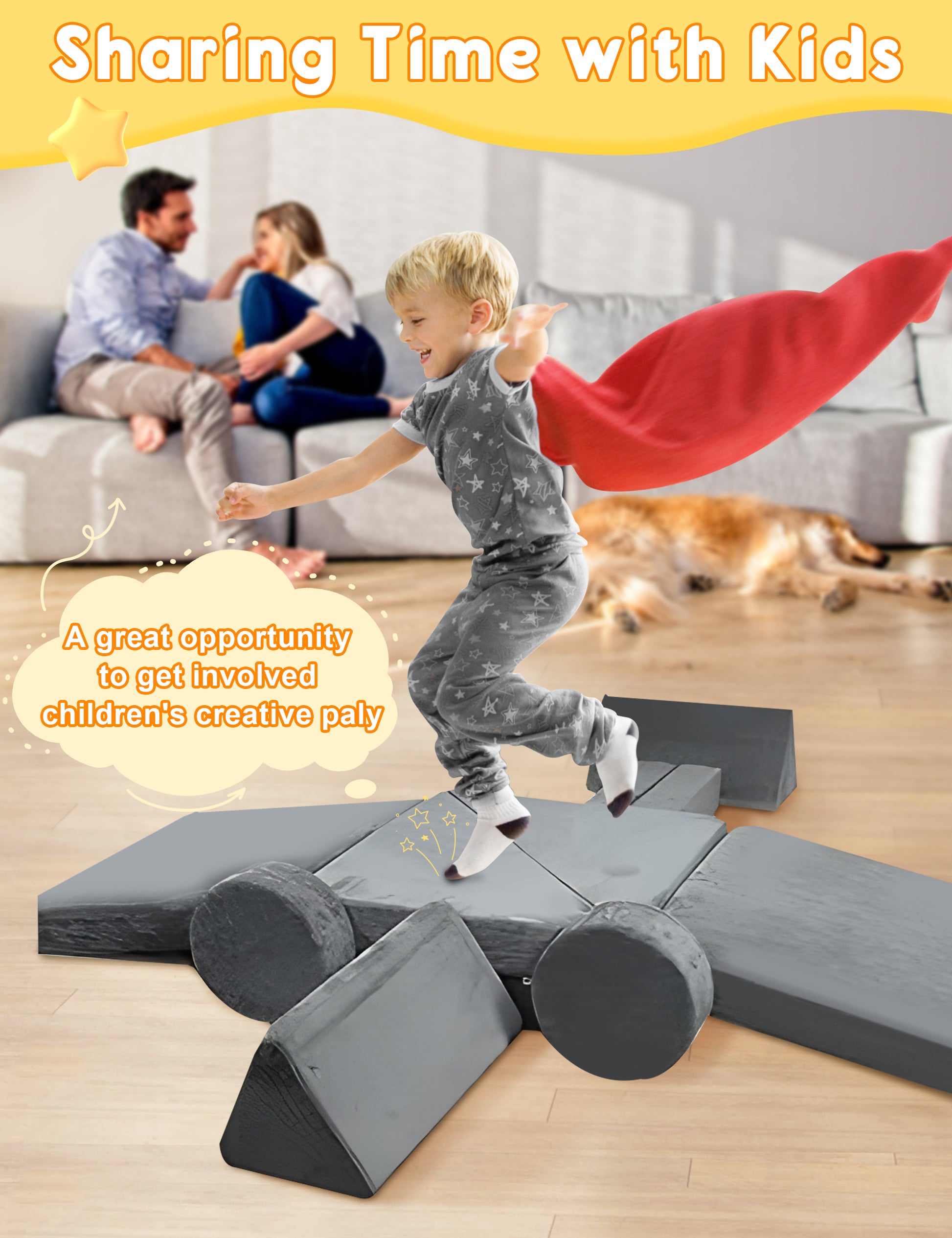 【Increase Family Interaction Time】With our modular kids sofa, the whole family can spend quality time together and enjoy entertainment. It creates a wonderful scene that can increase interactive activities for the whole family and develop children's social skills. Kids can create different forms, shapes or hiding places for the endless adventures they want to experience, and they're easily stacked and stored after each play session.