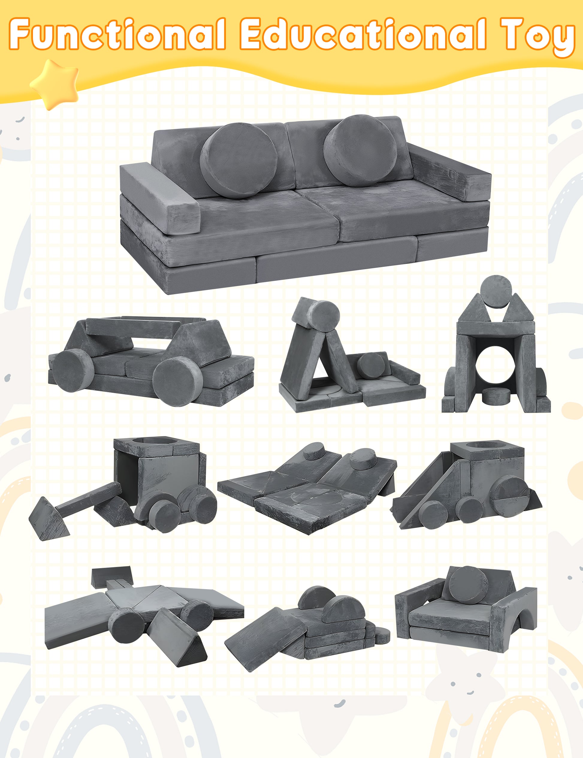 Rengue 14pcs Modular Kids Play Couch (Grey)