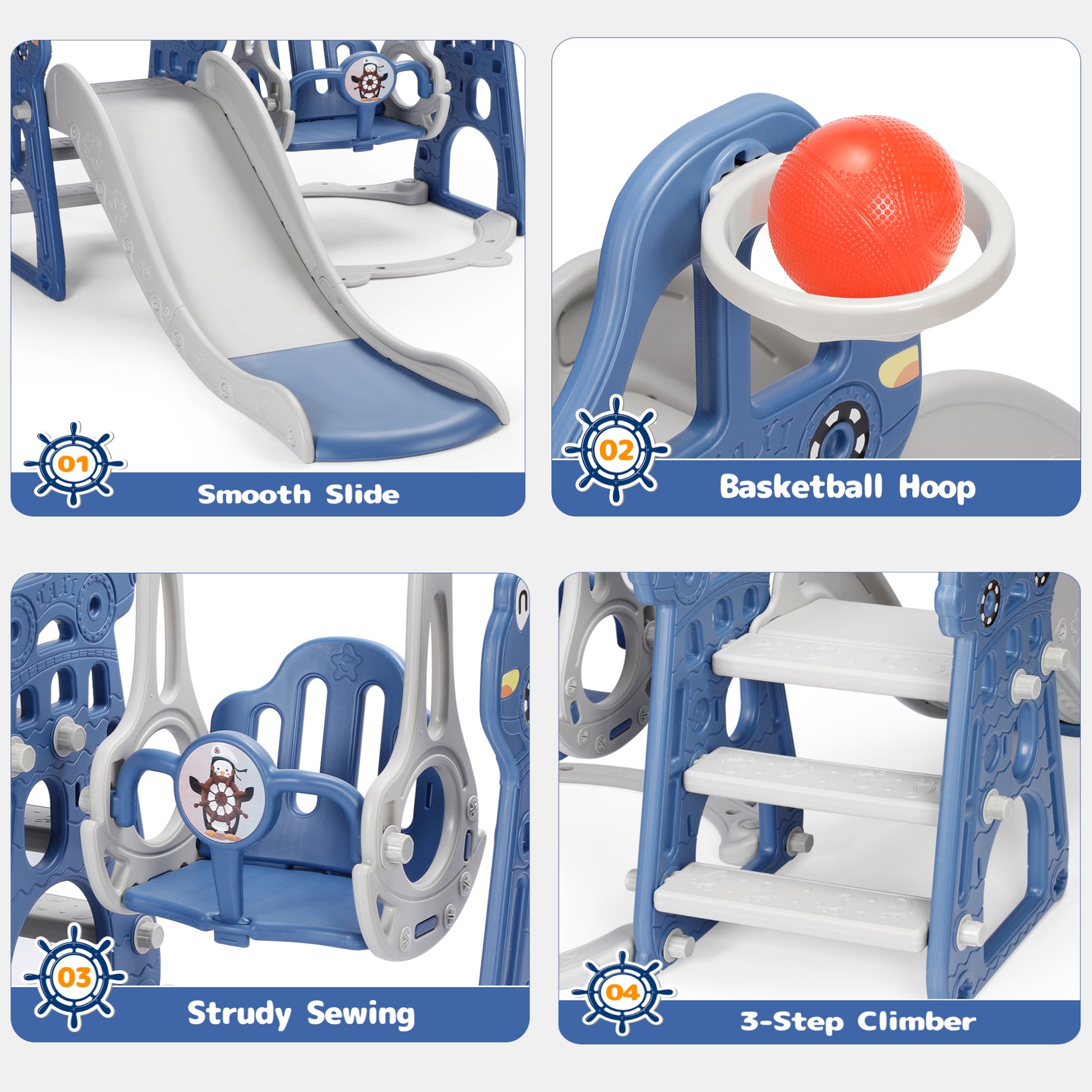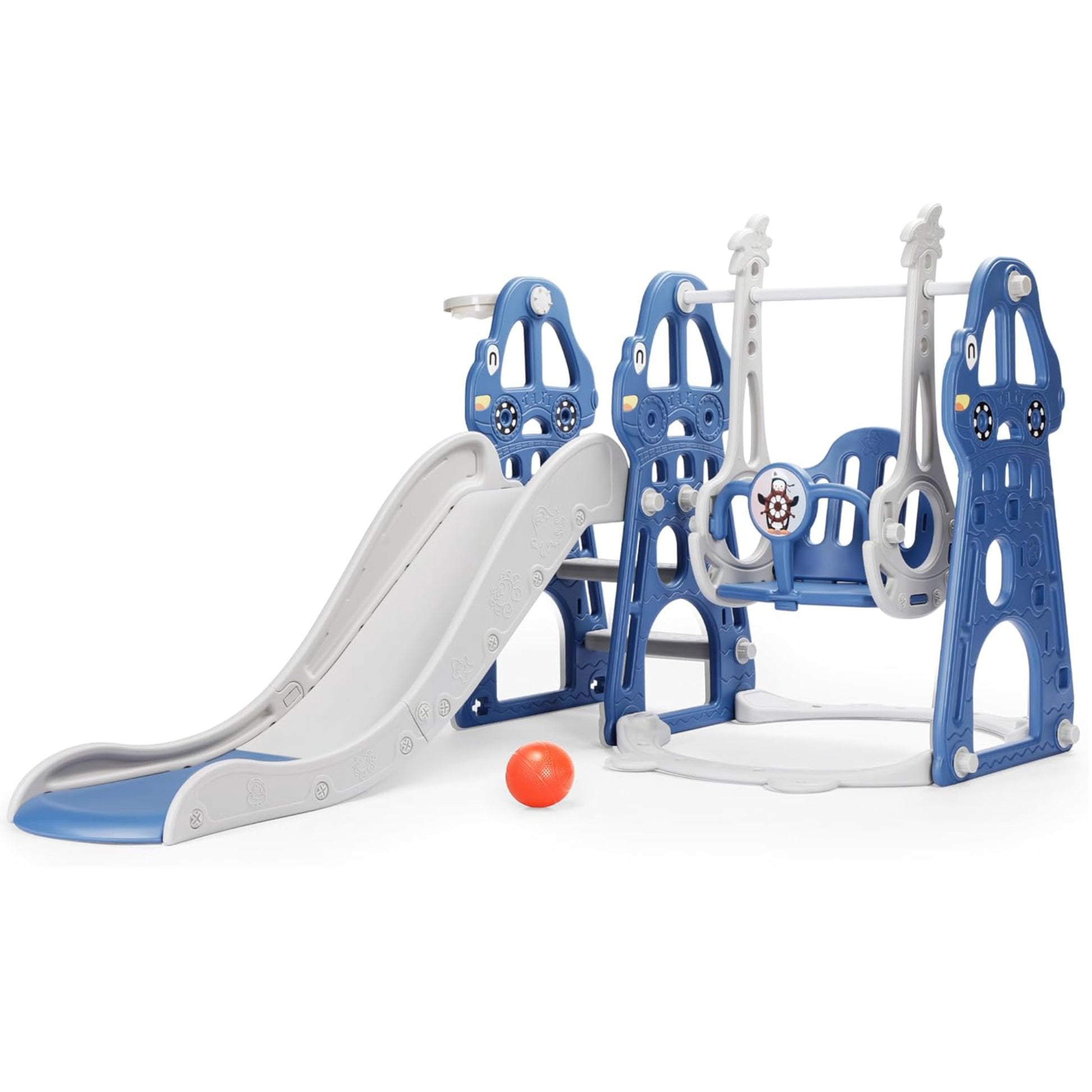 4-in-1 Design: Combined with a swing, slide, climber, and basketball hoop, providing your toddler with plenty of options for fun playtimes.
