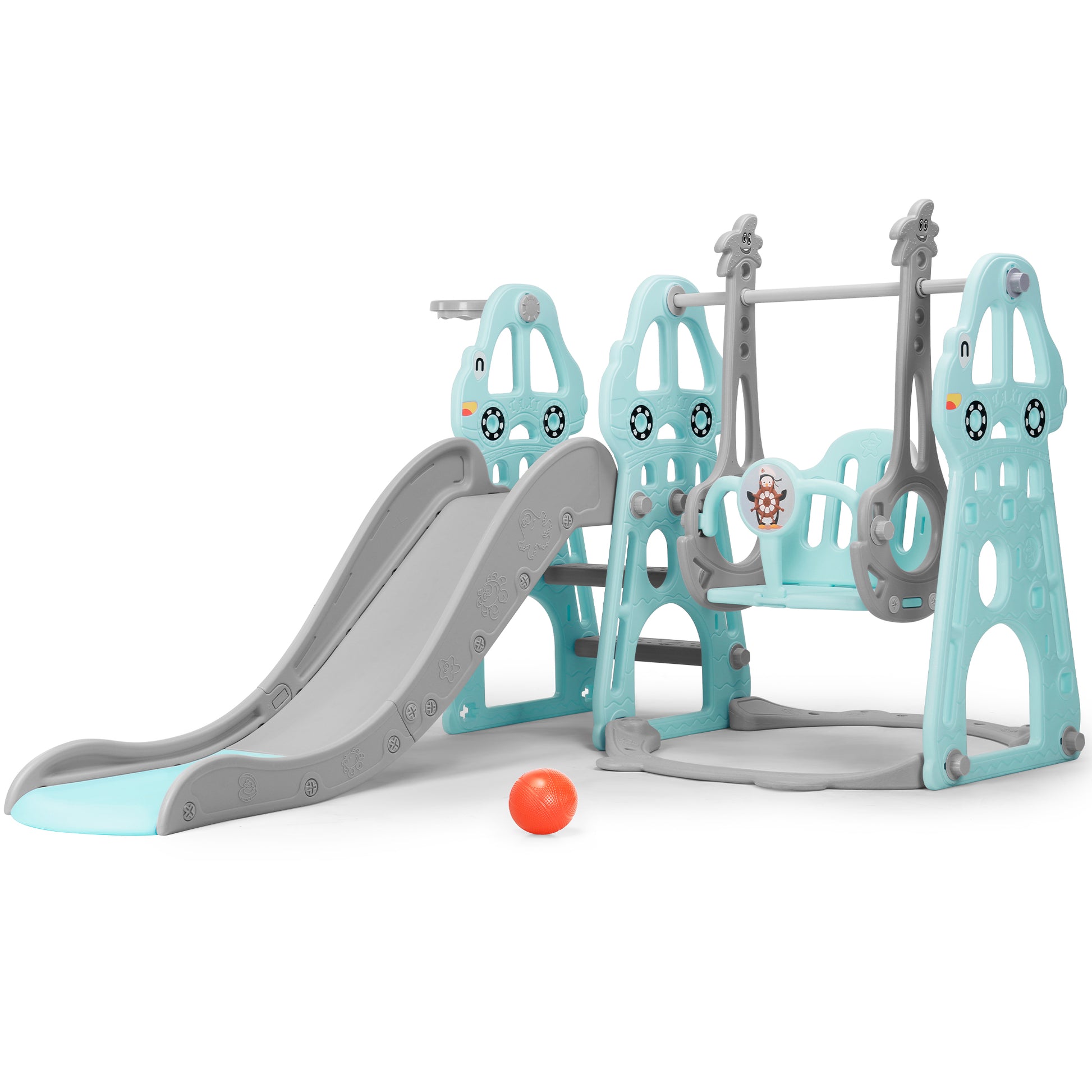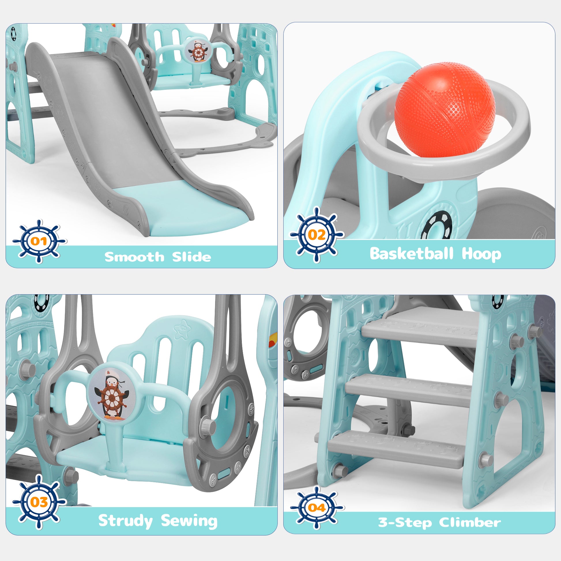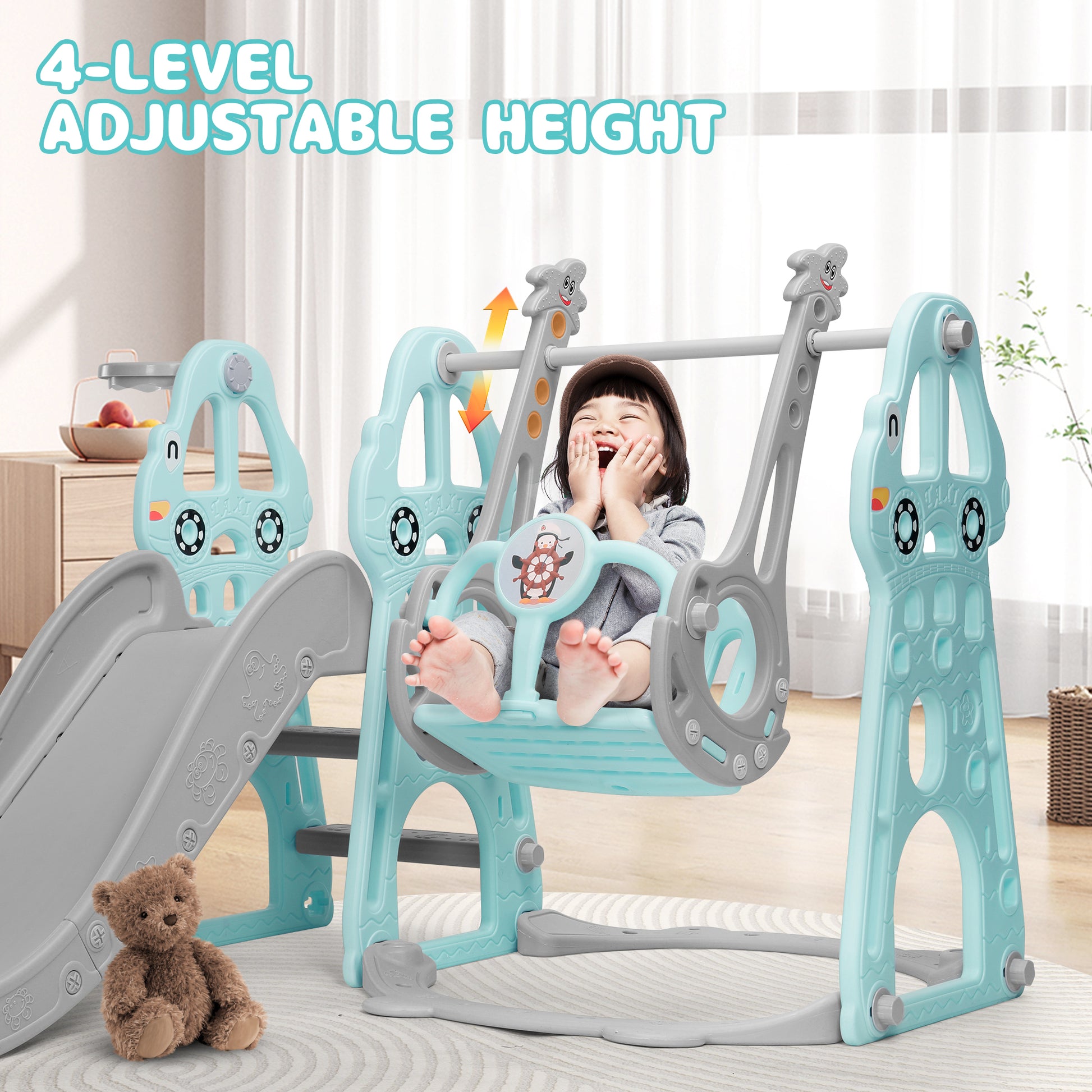 4-in-1 Design: Combined with a swing, slide, climber, and basketball hoop, providing your toddler with plenty of options for fun playtimes.