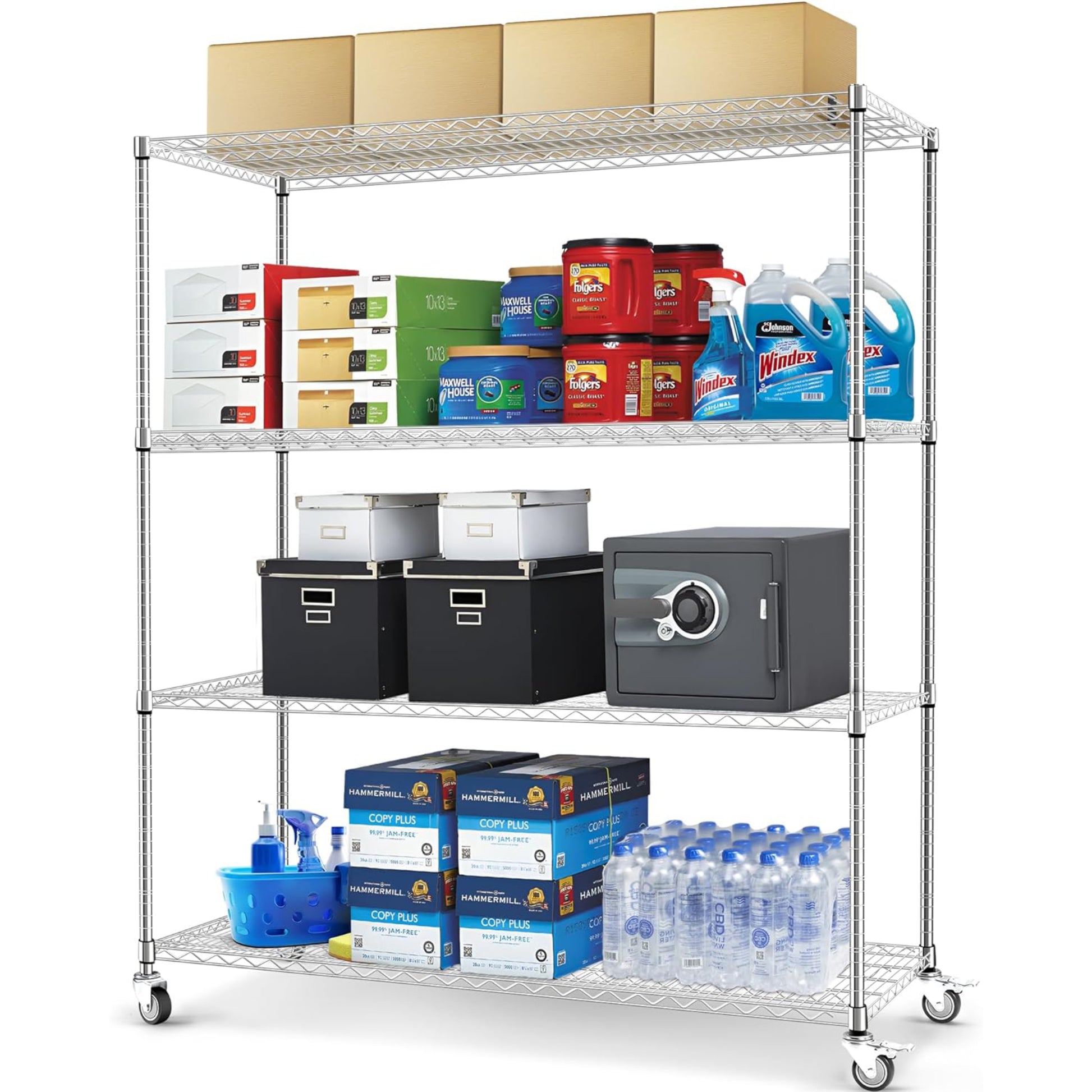 Perfect Size: 60"L x 24"W x 72"H, which can hold up to 600 lbs per tier for a total maximum load capacity of 2400 lbs.