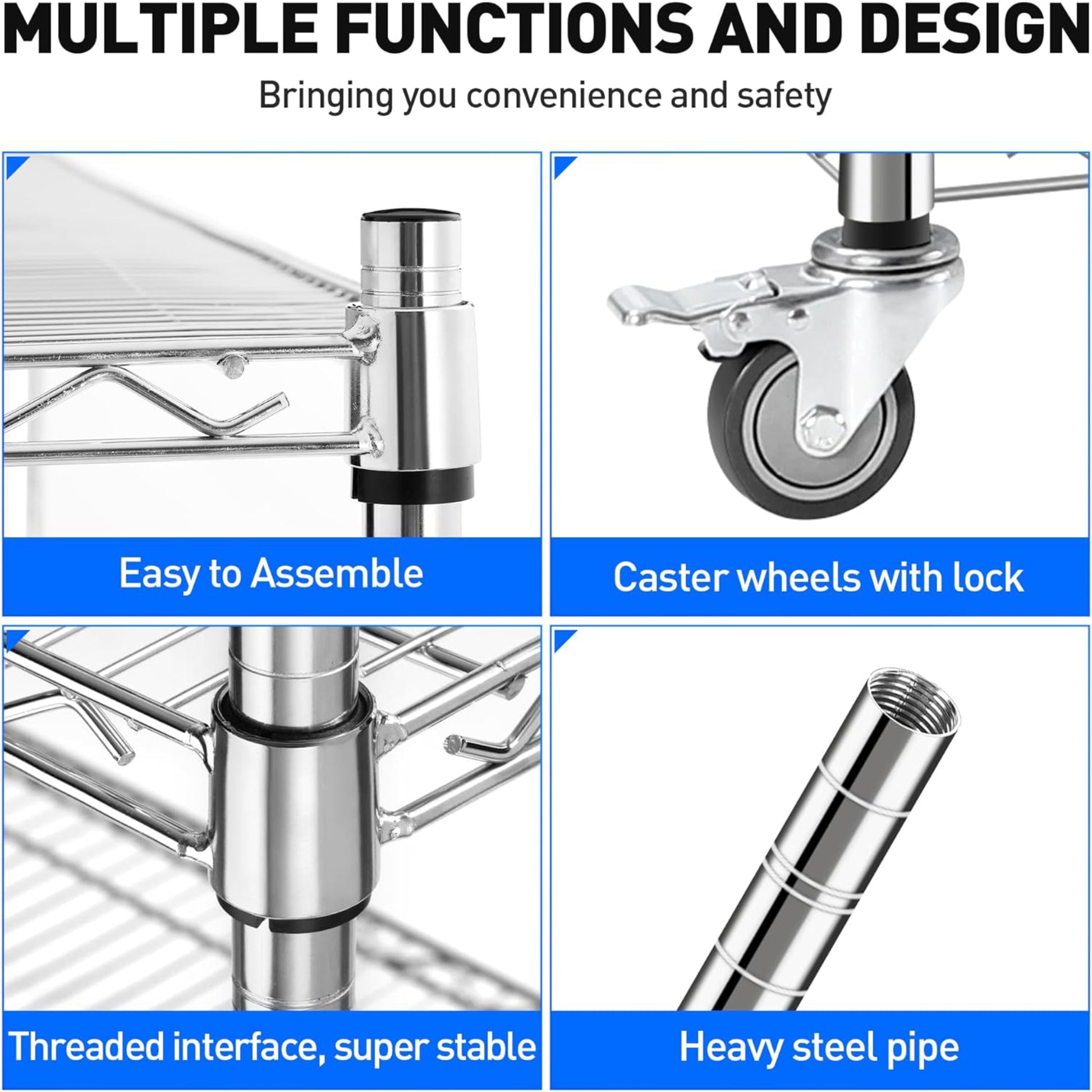 Easy to Assemble: No tools are required to install the storage rack, only a 10-minute wire shelving unit can be installed.