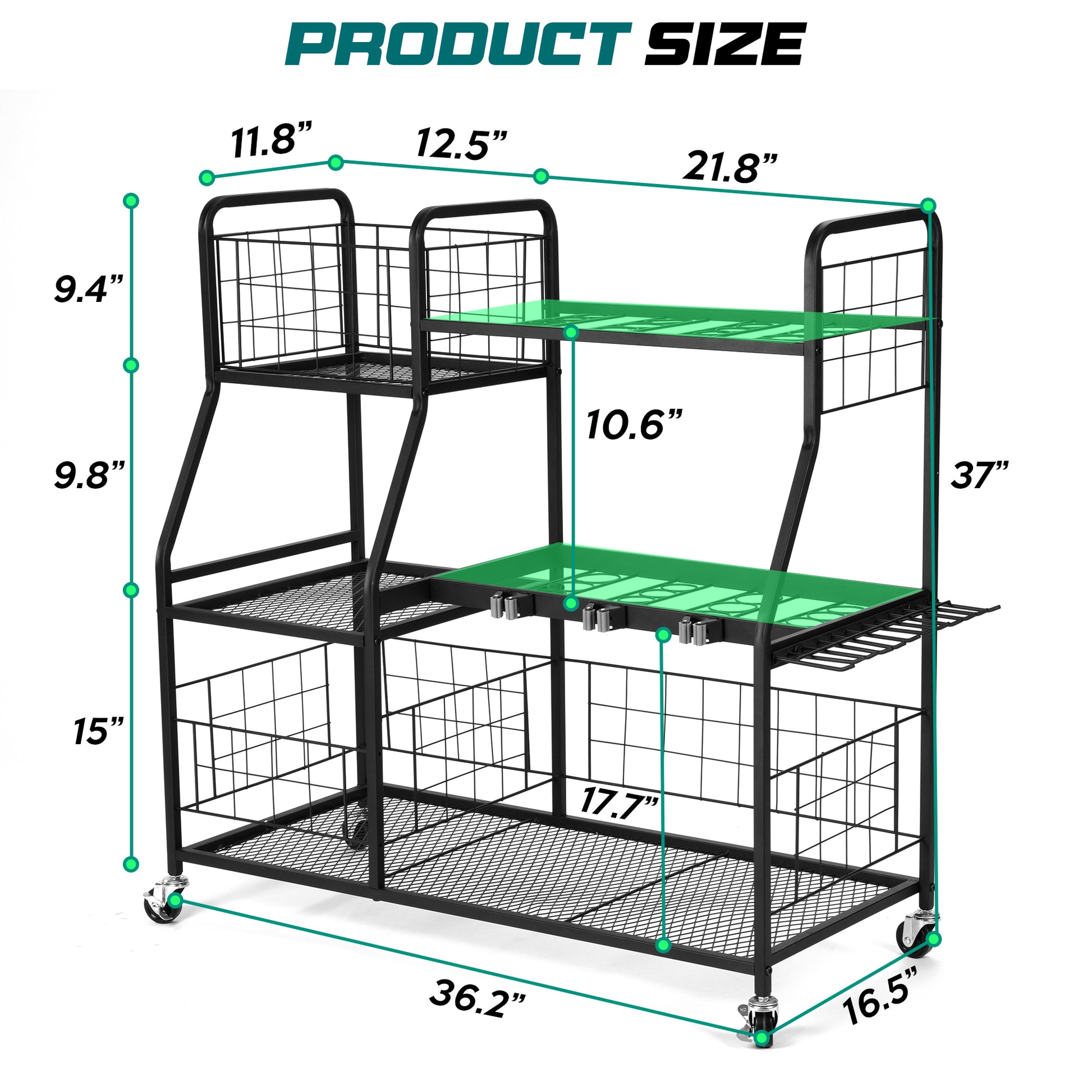 Spacious & Practical: Measuring 36.2x16.5x37 inches, this 3-tier tool rack offers ample storage space for all your gardening needs.