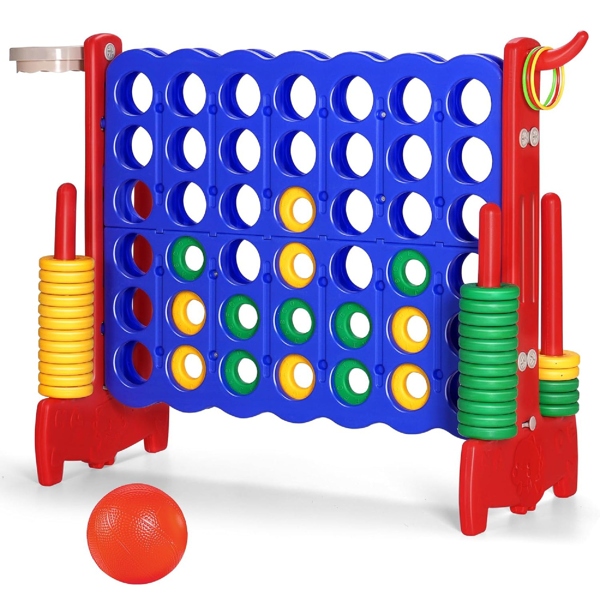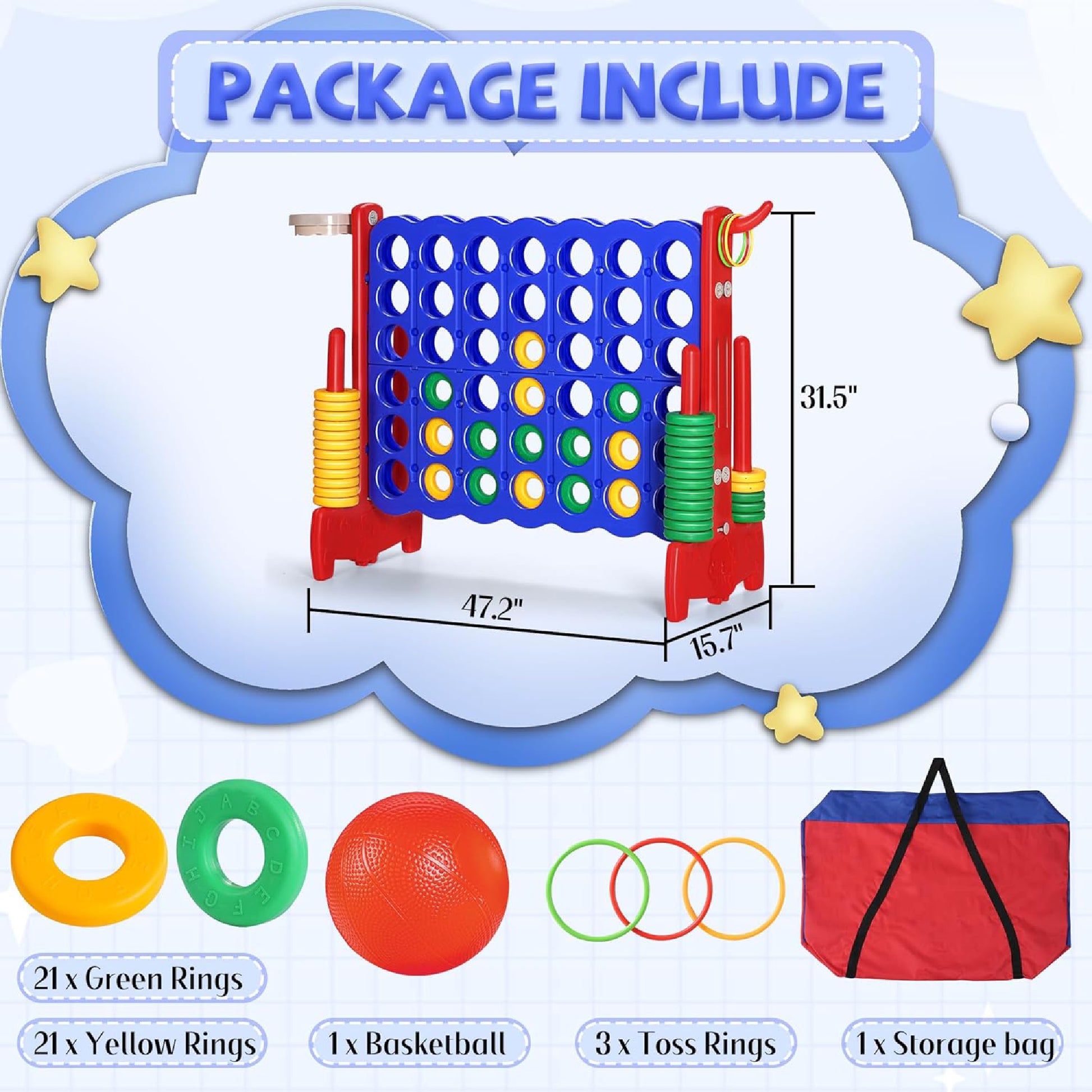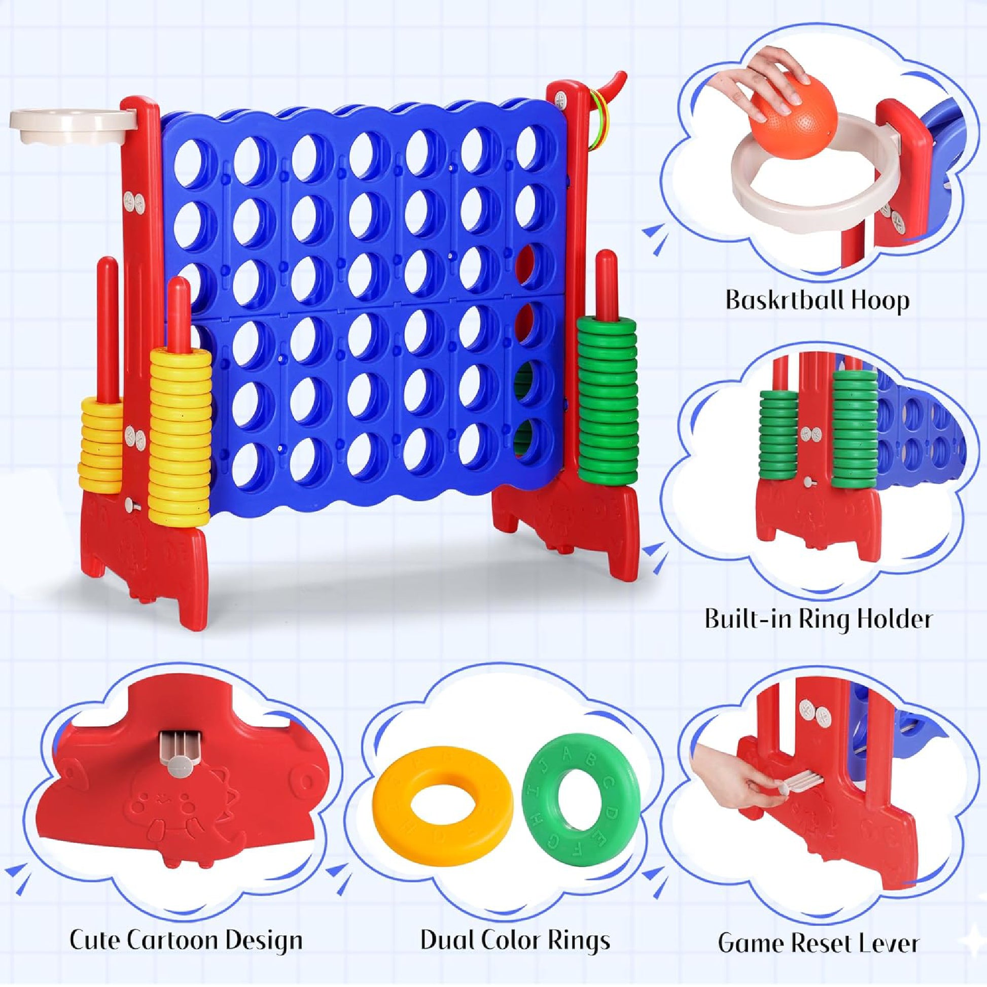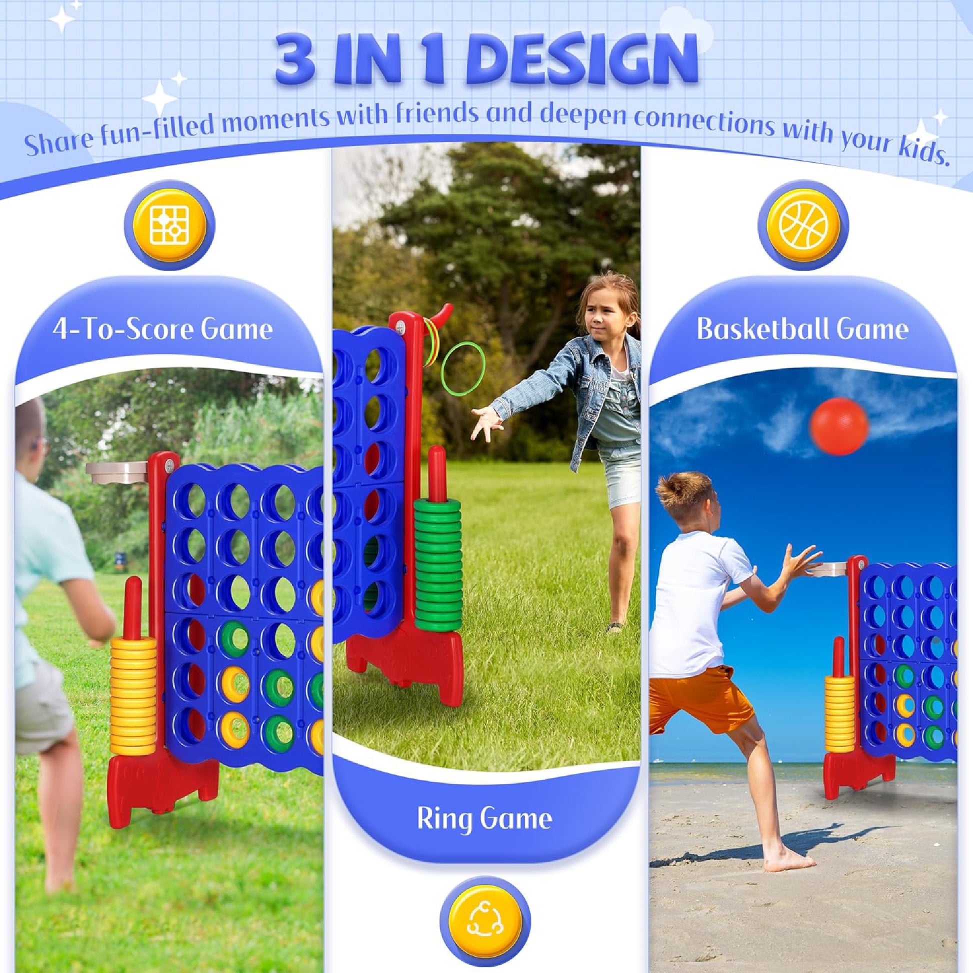 3-in-1 Design: Fuses three classic games into one: 4-to-score, ring toss, and basketball, it's an excellent tool to improve children's motor skills, hand-eye coordination, and cognitive abilities.